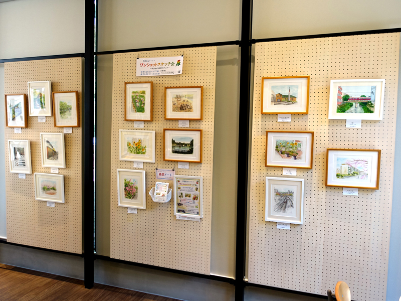 ・大阪府吹田市役所の1F「夢ギャラリー(受付裏の壁面)」にて2019/7/1〜9/30までワンショットスケッチ会の参加者ミニ作品展をさせて頂きました。 |